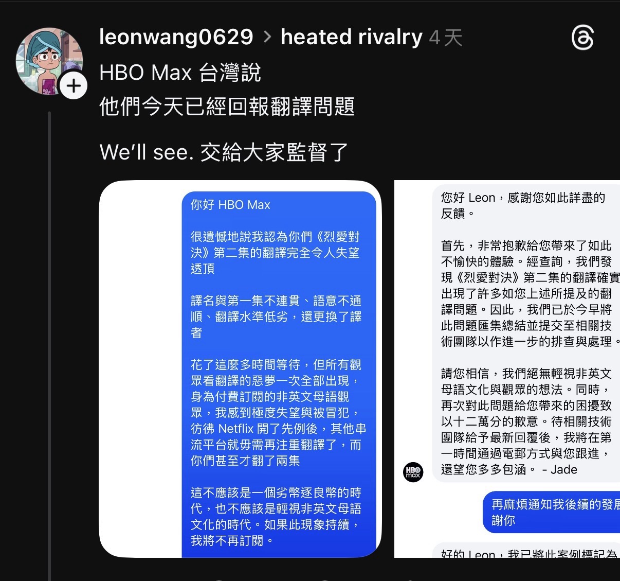 The dispute originated with a Taiwanese user who criticized the subtitles as awkward and of low quality, posting a complaint on social platform Threads. The criticism quickly spread online, prompting HBO Max to remove the Hong Kong Traditional Chinese option from the platform.